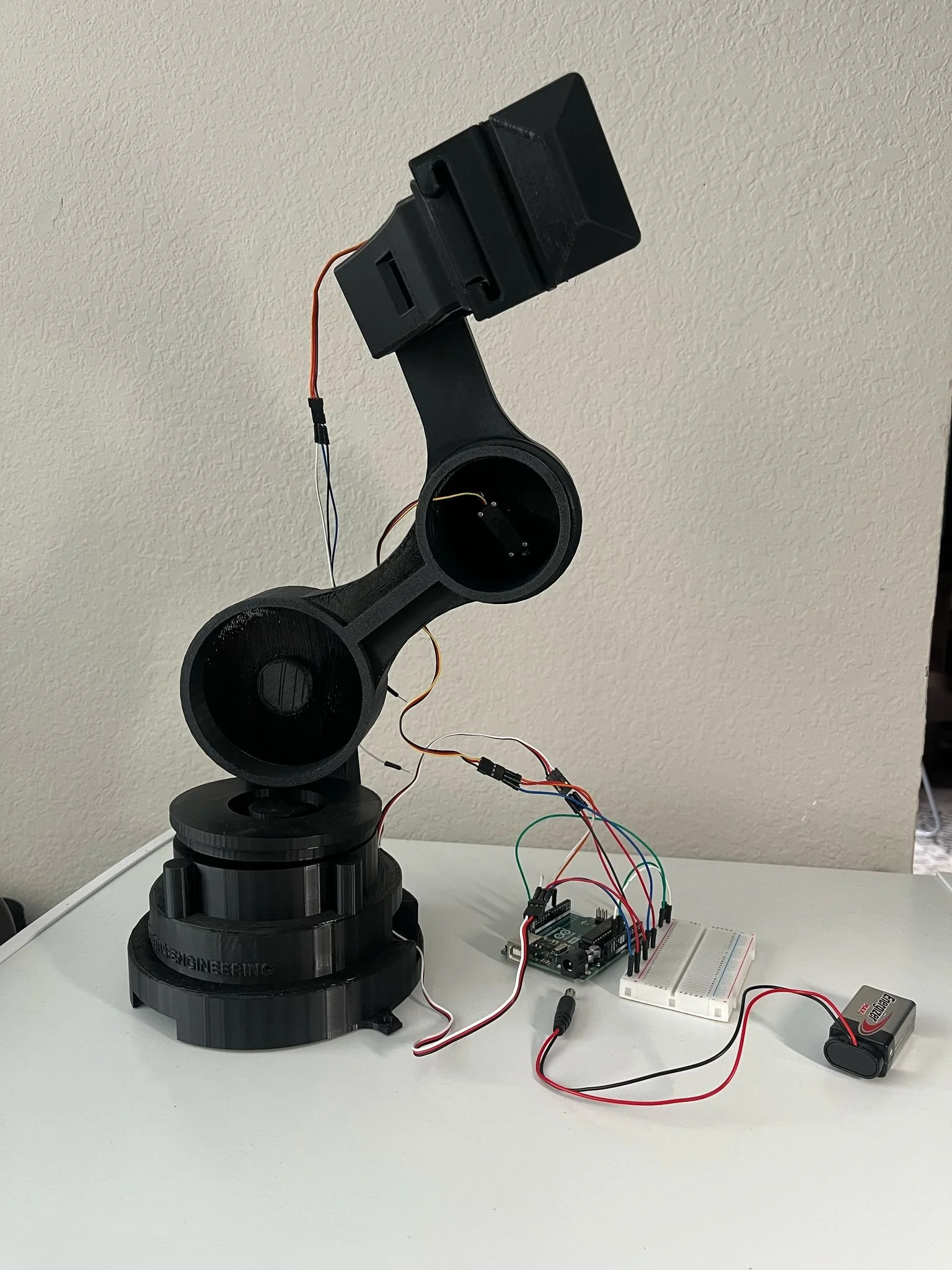 4DOF Robot Arm developed as a personal project to explore combining SolidWorks mechanical design with the use of Arduino and Arduino IDE controlled Servo Motors and Potentiometers.